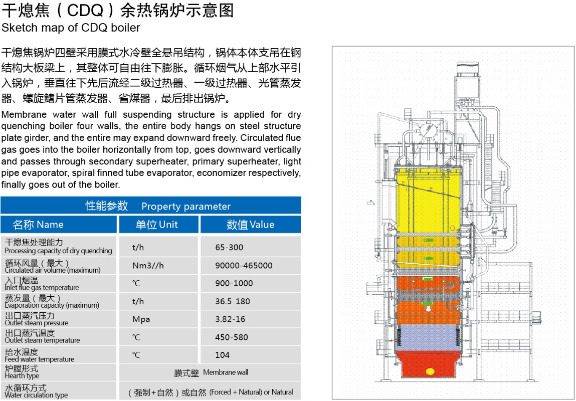 公司干熄焦余熱鍋爐產(chǎn)品在吸收國(guó)外先進(jìn)技術(shù)和經(jīng)驗(yàn)基礎(chǔ)上,結(jié)合我國(guó)具體實(shí)際,在設(shè)計(jì)、工藝、材料、制造及檢驗(yàn)等環(huán)節(jié)嚴(yán)格控制,對(duì)鍋爐中最薄弱的環(huán)節(jié)采取特殊防護(hù)措施,以最大限度提高鍋爐熱效率和使用壽命;公司研制的高溫高壓干熄焦余熱鍋爐被列入國(guó)家863計(jì)劃、國(guó)家火炬計(jì)劃和江蘇省科技成果轉(zhuǎn)化專(zhuān)項(xiàng)資金扶持,項(xiàng)目研究成果榮獲國(guó)家科技進(jìn)步二等獎(jiǎng)、中國(guó)冶金科學(xué)技術(shù)獎(jiǎng)一等獎(jiǎng);同時(shí)高溫高壓干熄焦余熱鍋爐被列入國(guó)家重點(diǎn)新產(chǎn)品和省高新技術(shù)產(chǎn)品,突破了余熱鍋爐防腐、密封、防膨脹等多項(xiàng)專(zhuān)利技術(shù),同時(shí)參與了YB/T 4255-2012《干熄焦節(jié)能技術(shù)規(guī)范》行業(yè)技術(shù)標(biāo)準(zhǔn)的制定;通過(guò)技術(shù)專(zhuān)利化、專(zhuān)利標(biāo)準(zhǔn)化戰(zhàn)略,構(gòu)筑產(chǎn)品市場(chǎng)核心競(jìng)爭(zhēng)力。